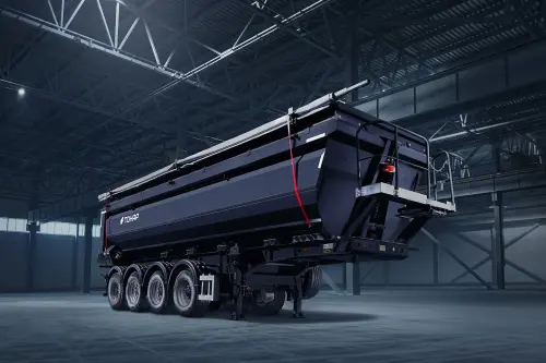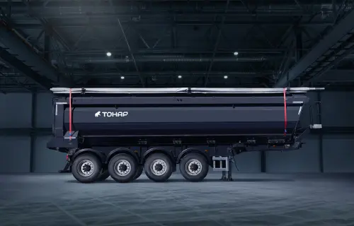 Облегчённый самосвальный полуприцеп подходит для перевозки различных сыпучих строительных материалов. Для эффективной работы сцепки требуется тягач с колёсной формулой 4х2.